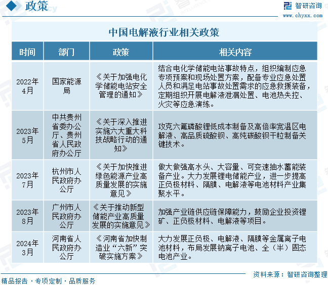 電解液行業政策