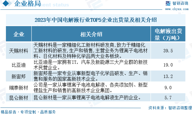 電解液行業企業格局和重點企業分析