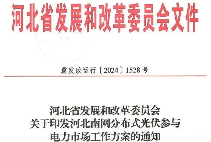 11月19日,河北省發改委印發關于《河北南網分布式光伏參與電力市場工作方案》的通知。通知明確,以2030年新能源上網電量全面參與市場交易為目標,遵循“先增量后存量、先商用后戶用、先試點后推廣”的原則有序、分類地推動分布式光伏入市,最終實現與集中式新能源的入市電量比例相同,逐步引導分布式光伏合理承擔系統調峰、調頻等消納成本。