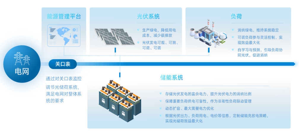 光儲荷網一體化技術可以通過多能互補和儲能響應,實現電網友好和荷隨源動的目標,促進新能源和復雜產業相融合,為大電網的穩定運行提供了支持。其中,能源管理平臺是落實光儲荷有效聯動的核心中樞,可以根據光伏出力、儲能功率、負荷用電、電網電價等信息,定制儲能充放電策略,實現用戶效益最大化,滿足電網整體系統的要求。