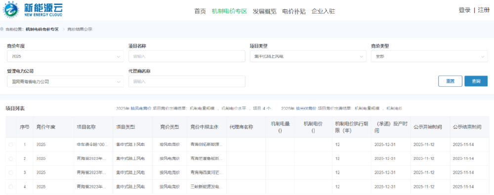 根據結果公示,2025年按風電競價項目競價出清結果:機制電量規模542999.999兆瓦時,機制電價水平0.240000元/千瓦時,項目4個;