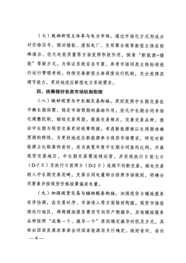 加強現(xiàn)貨交易與輔助服務銜接。加強現(xiàn)貨與輔助服務有序協(xié)調(diào),在交易時序、市場準入等方面做好銜接。現(xiàn)貨市場連續(xù)運行地區(qū),調(diào)頻輔助服務費用可向用戶側(cè)疏導,其他輔助服務品種按照“成熟一個、疏導一個”原則確定疏導時機及方式,具體由國家發(fā)展改革委會同國家能源局另行確定。做好省間、省內(nèi)現(xiàn)貨市場與區(qū)域輔助服務市場的銜接融合,提升電力資源優(yōu)化配置效率。