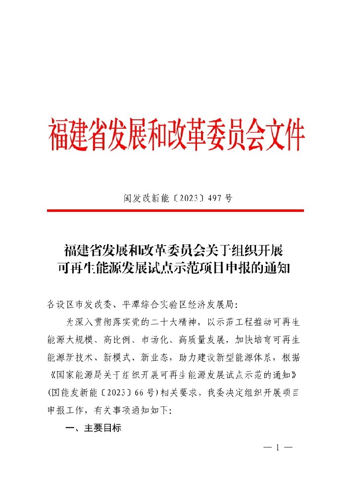 日前,福建省發展和改革委員會關于組織開展可再生能源發展試點示范項目申報的通知。