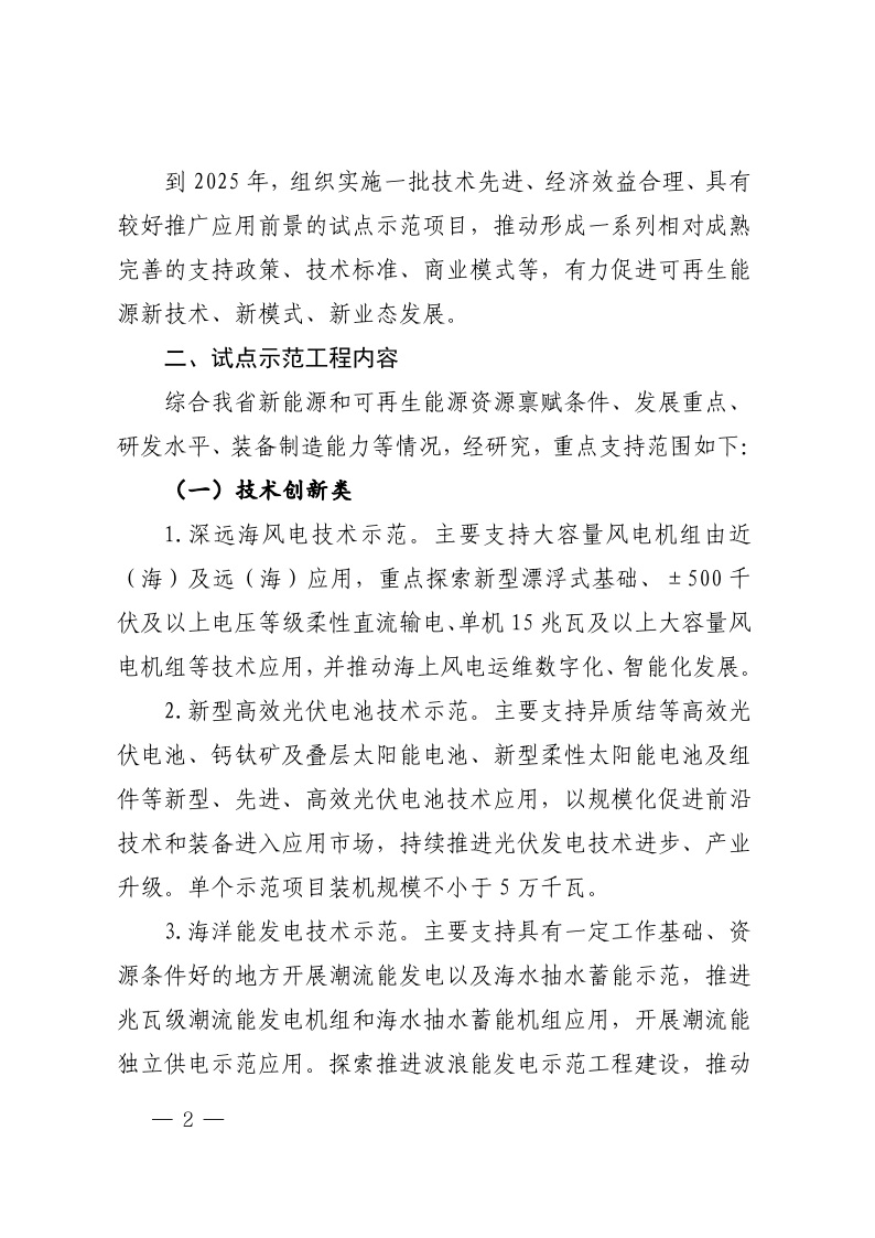 通知提出,到2025年,組織實施一批技術先進、經濟效益合理、具有較好推廣應用前景的試點示范項目,推動形成一系列相對成熟完善的支持政策、技術標準、商業模式等,有力促進可再生能源新技術、新模式、新業態發展