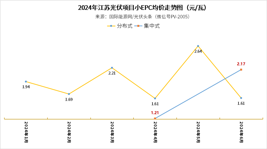 集中式小EPC,僅4月與6月有項目定標,均價分別為1.21元/W與2.17元/W。