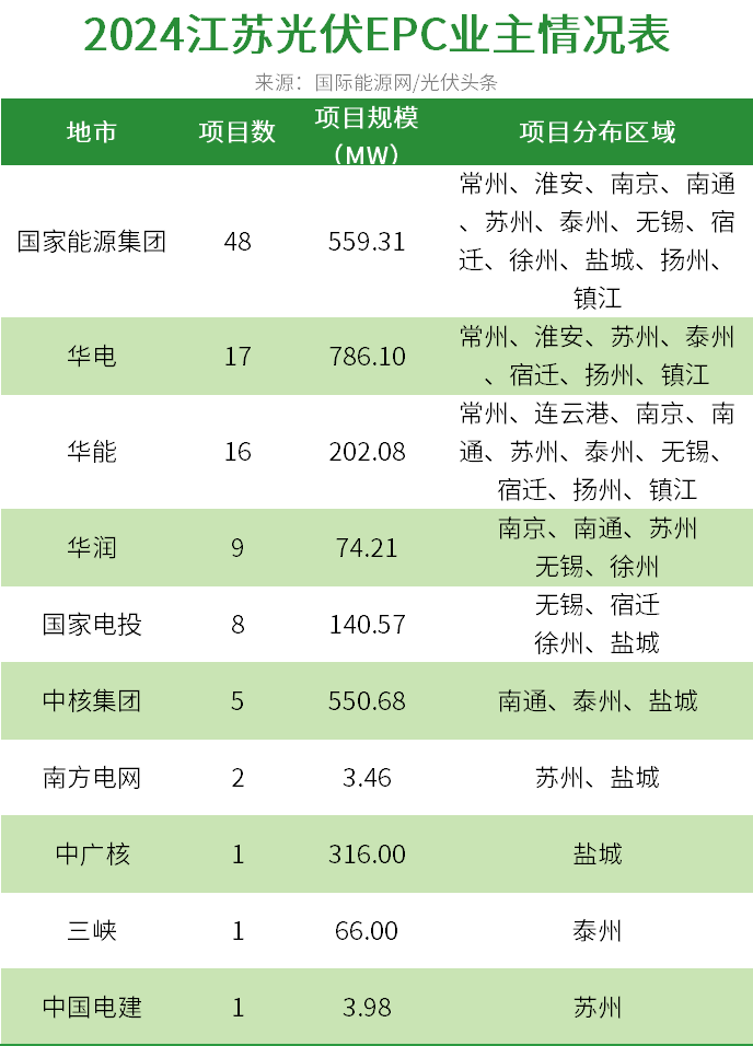 五大發電集團占據江蘇光伏EPC市場半壁江山