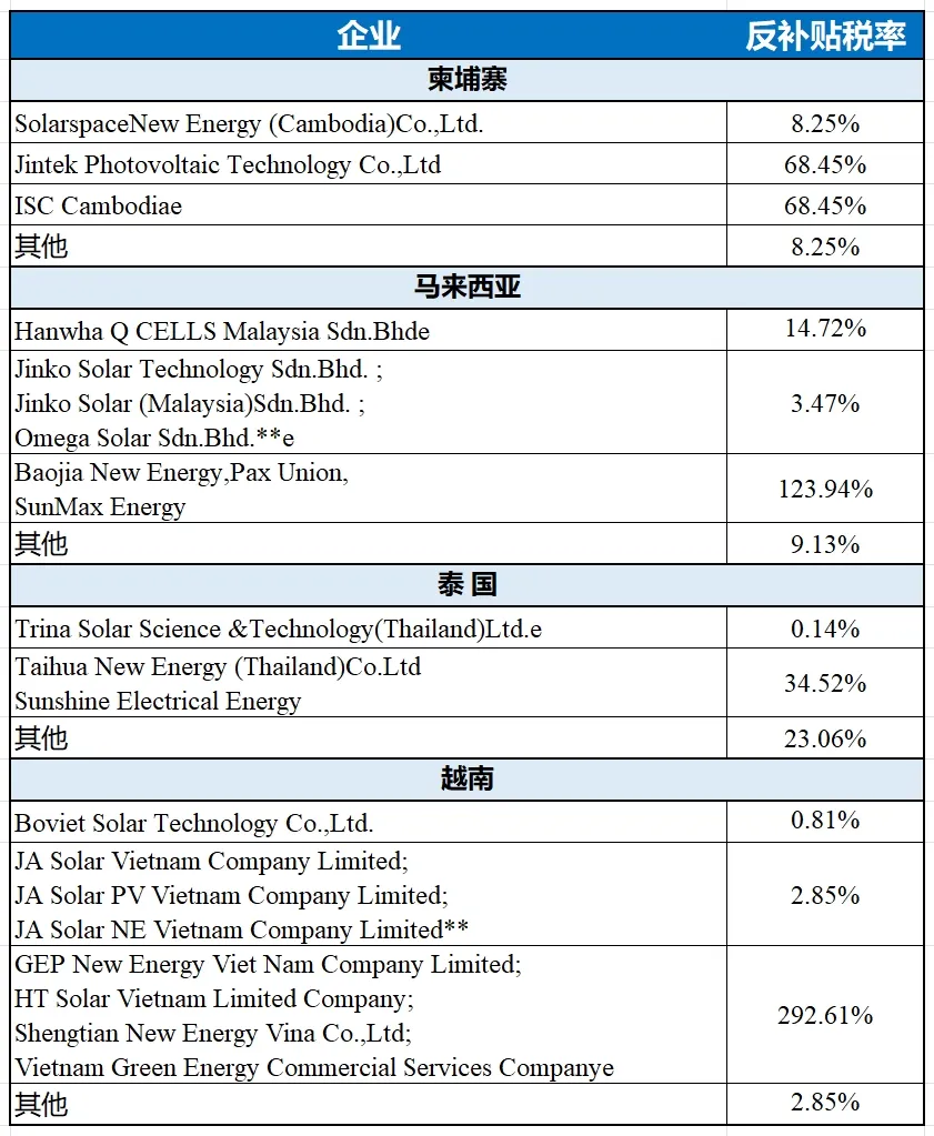 圖:美對東南亞四國光伏產品征收反傾銷稅